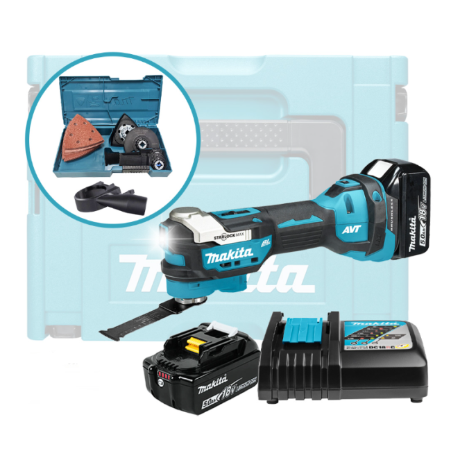 Многофункциональный инструмент Makita DTM52 - это чрезвычайно тихий мультиинструмент с антивибрационной системой AVT и бесщеточным двигателем BL-motor. Использует пильные полотна с креплением Starlock, Starlock Plus и Starlock Max. Полотна могут быть расположены под 12 различными углами без использования инструмента. Выбрав необходимую насадку, инструмент может резать, шлифовать, полировать, вырезать, зачищать.