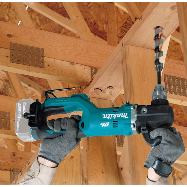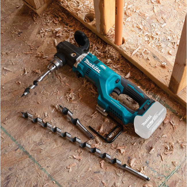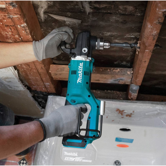 Дрель акккумулятораная Makita DDA460Z - инструмент с увеличенной мощностью для применения в труднодоступных местах. 2 скорости, электронная регулировка, адаптивная настройка по нагрузке, реверс, защита привода. Угловой дрелью Makita DDA460Z можно сверлить отверстия в дереве и пластике диаметром до 127 мм и в стали до 13 мм. Работать инструментом благодаря компоновке можно в местах, где обычную дрель применить проблематично, и при этом энергетические возможности этого агрегата вполне сопоставимые.