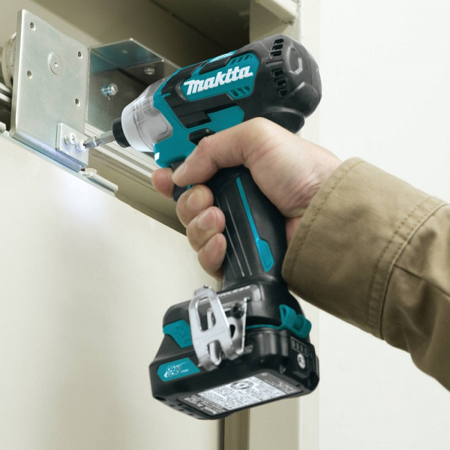 - Металлический зажим - для крепления аккумуляторного ударного шуруповерта Makita TD111DWAE на поясе.