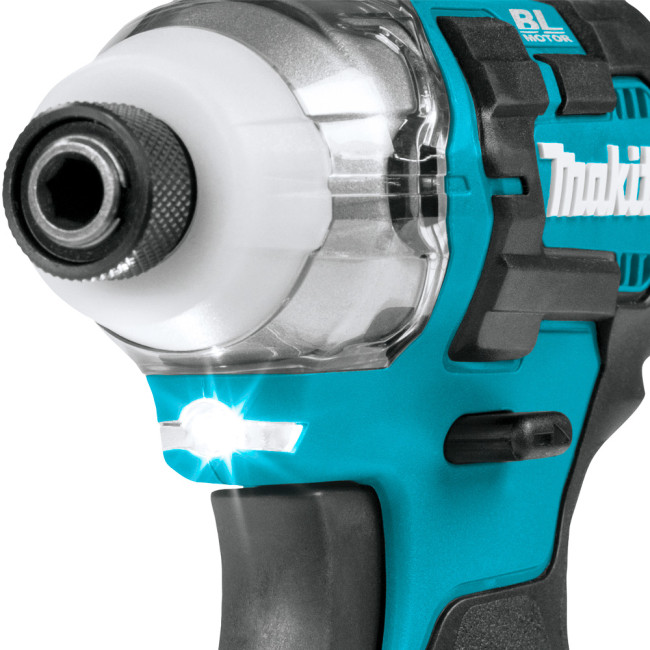 Как любой шуруповерт, инструмент Makita TD111DZ имеет переключатель реверса и электрический тормоз привода. Патрон у этого агрегата – под стандартные биты, есть у него и крючок для крепления на ремне. Светодиодная подсветка включается традиционно – при нажатии на курок, и имеет послесвечение 10 секунд после его отжатия. Это время можно сократить, воспользовавшись кнопкой в основании инструмента.