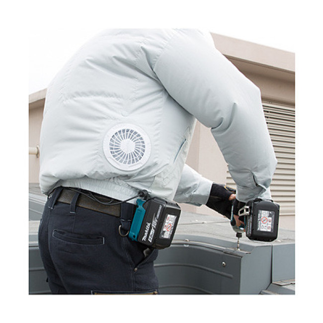 Легкая куртка с капюшоном и эффективным охлаждением. Куртка с аккумуляторным вентилятором Makita DFJ207ZXL предназначена для создания комфортных условий для работы специалистов разного профиля в "горячих" местах. В качестве источника питания используются Li-Ion аккумуляторные батареи напряжением 12/10.8/14.4/18 В различной емкости - 1.5-6.0 Ач. Чем больше емкость, тем дольше будет функционировать вентилятор без подзарядки. Куртка поставляется без батарей и зарядного устройства. Куртка изготовлена из 100% полиэстера. После извлечения вентилятора и источника питания ее можно стирать. Капюшон, плотные манжеты и пояс обеспечивают тесное прилегание куртки, что позволяет поддерживают оптимальную циркуляцию воздуха внутри. Пять карманов предназначены для ношения аксессуаров и нужных мелких предметов.