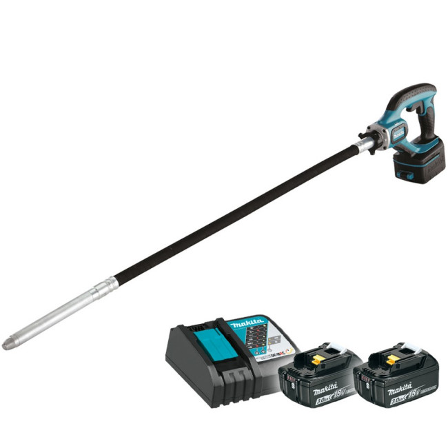 Аккумуляторный вибратор для бетона Makita DVR450RFE представляет собой специализированное оборудование для строительных площадок. Модель применяется в процессе заливки фундамента и прочих бетонных сооружений. Высокая частота вибрации позволяет эффективно удалять образовавшиеся полости и воздушные пузыри в свежем бетоне. Длинная подвижная часть агрегата позволяет работать на глубине до 1200 мм. В комплект поставки входят два аккумуляторных блока емкостью 3 Ач.