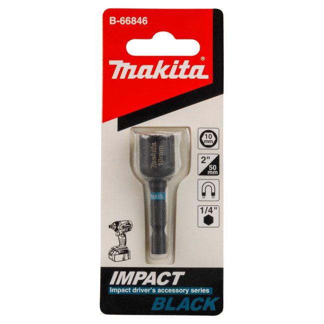 Головка 10 мм х 50 мм из серии Makita Impact Black. Подходит для ударных гайковертов благодаря высокому крутящему моменту. Черное покрытие предотвращает ржавление. Лучшая посадка по сравнению со стандартными битами Makita. С гнездом формы E 1/4" длиной 50 мм.