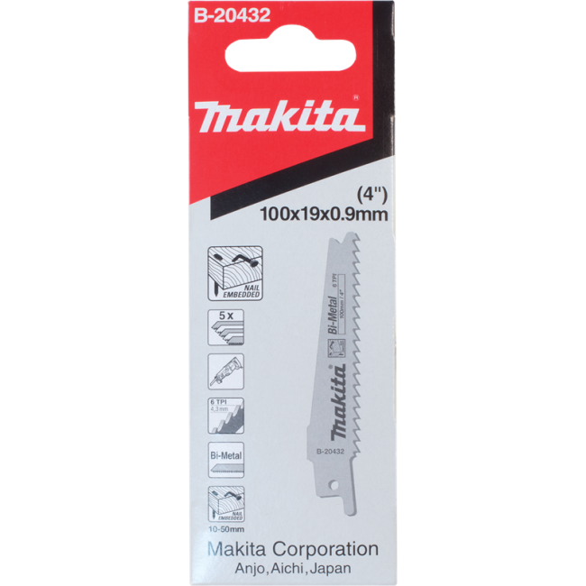 Сабельное полотно для дерева с гвоздями BiM 100x19x0.9 мм, 6TPI, 5 шт Makita B-20432