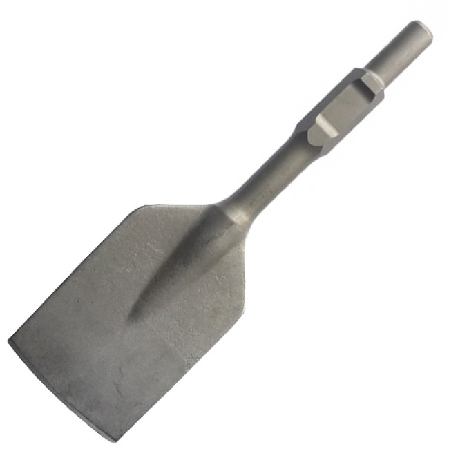 Лопаточное долото по бетону 125x400 мм с шестигранным креплением 30 мм Makita P-05608 с большим ресурсом и с увеличенной скоростью образования канавки. Применяется при снятии бетона, штукатурки и прочих слоистых старых материалов.