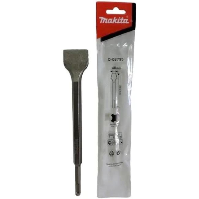 Плоское широкое долото Makita P-05527 с большим ресурсом и с увеличенной скоростью образования канавки. Применяется при снятии бетона, штукатурки и прочих слоистых старых материалов. Общая длина 200 мм, длина режущей кромки 40 мм.