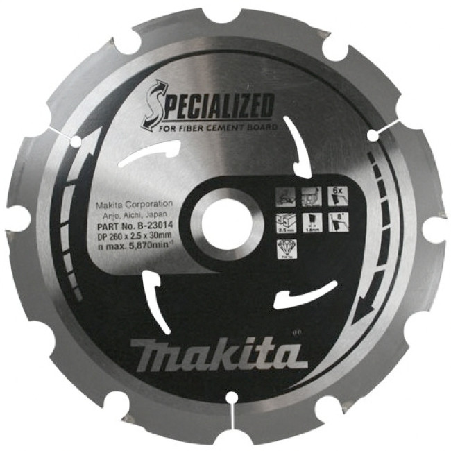 Пильный диск для цементно-волокнистых плит предназначен для резки цементно-волокнистых плит. В состав напаек данного диска включены искусственные алмазы для увеличения срока службы.Благодаря специальной форме зубов и режущей поверхности диска, его производительность, качественный распил и износостойкость значительно увеличены. А специальная форма вентиляционных отверстий улучшает охлаждение диска и продлевает срок его службы. Купить товар - Диск пильный для цементно-волокнистых плит, 260х2.5х30 мм, 6T, 8G, FTG Makita B-31625 (аналог: B-23014), по выгодной цене очень просто, достаточно положить товар в «корзину» и оформить заказ или позвонить нам по телефону, так же можно для Вашего удобства, отправить заявку на Е-майл.