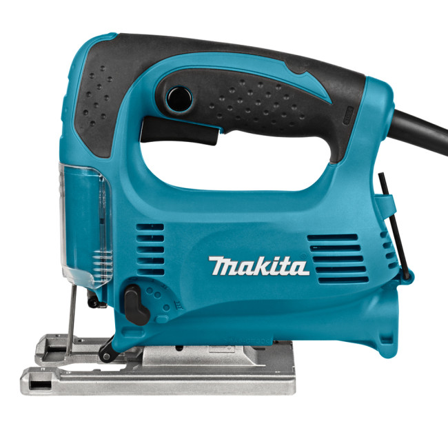 Лобзик Makita 4329 используется для прямых и фигурных пропилов. Скорость пиления устанавливается перед началом эксплуатации. Три режима маятникового хода позволяют ускорить работу. Для непрерывной работы предусмотрена кнопка фиксации скорости. Подошва может наклоняться до 45 градусов в обе стороны.
