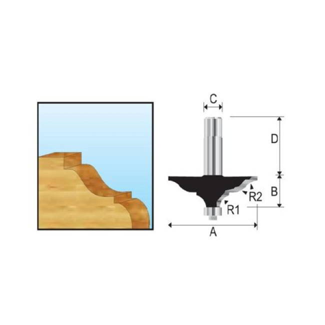 Фигирейная горизонтальная фреза Makita D-11813 с хвостовиком 12 мм. Форма классическая. Используется для фрезерования кромок деревянных заготовок и готовых изделий. Диаметр 63.5 мм, длина режущей части 19.84 мм, хвостовик 12 мм, длина 38 мм, радиус 6.35, 9.5 мм, 2Т.