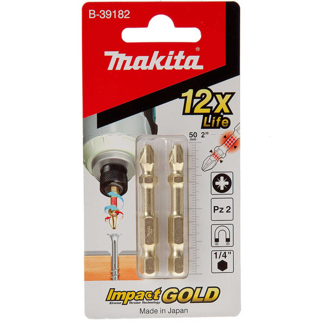 Бита крестовая Pozidriv PZ2 из серии Makita Impact Gold. Высококачественная бита ударного шуруповерта, которая идеально подходит для использования в ударных шуруповертах благодаря чрезвычайно высокому крутящему моменту и идеальной посадке.Имеет расширенную зону кручения и изготовлен из прочного стального сплава. Это делает биты пригодными для самых тяжелых работ и долговечными в использовании благодаря антикоррозийному покрытию. Биты Impact Premier имеют цветовую маркировку. Это упрощает определение правильного бита для приложения. Биты ударной отвертки имеют гнездо формы E 1/4" и длину 50 мм. Две биты PZ2 в упаковке.