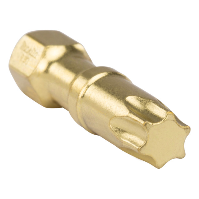 - Золотистое антикоррозийное покрытие обеспечивает более длительный срок службы бит.