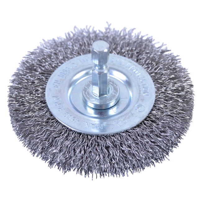 Проволочные щетки используются для удаления сварных кромок, краски или ржавчины с плоских или неровных поверхностей. Круглая щетка Makita P-66874 ? 75 мм с рифлеными проволочными щетками толщиной 0,3 мм из оцинкованной стали. Подходит для более мягкого съема материала и среднего эффекта кисти на плоских и неровных поверхностях. С шестигранным хвостовиком 1/4 дюйма Е-формы..