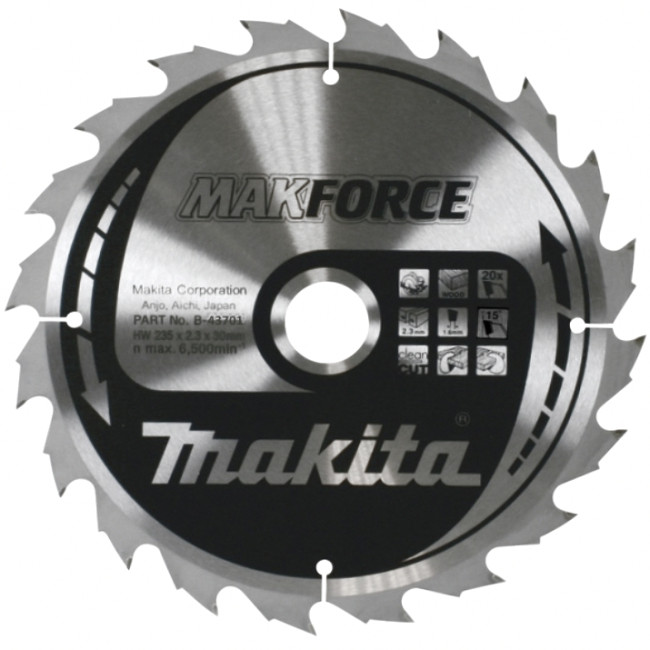 Пильный диск высокого класса с низким износом для долгой работы для ровного и чистого распила. Полностью закаленные и точно выровненные зубья отлично поглощают удары и обеспечивают высокую курсовую устойчивость и долговечность. А тонкие лезвия обеспечивают низкий износ и делают движение вперед более плавным. Твердосплавный диск МАКФОРС МАКИТА В-43701 предназначен для продольного и поперечного распила древесины, поэтому он легко сплавляется с многослойной фанерой. так же можно для Вашего удобства, отправить заявку на Е-майл.
