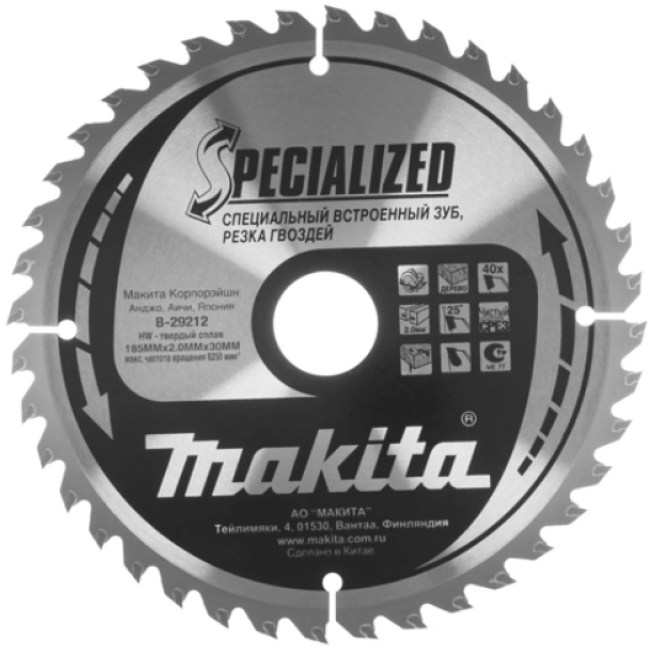 Пильный диск Макита В-29212 (аналог: А-86072), специально предназначен для распила старых пиломатериалов и демонтажных работ. Диск обладает повышенной прочностью зубьев, так как зубья диска глубоко впаяны. Благодаря перечисленным свойствам диск обеспечен долговечностью, высокой производительностью и износостойкостью, и легко справится с гвоздями, оставшимися в древесине. Купить товар - Диск для дерева с гвоздями, 185х2.0х30 мм, 40T, ATB Makita B-29212 (аналог: A-86072) очень просто, достаточно положить товар в «корзину» и оформить заказ или позвонить нам по телефону, так же можно для Вашего удобства, отправить заявку на Е-майл.