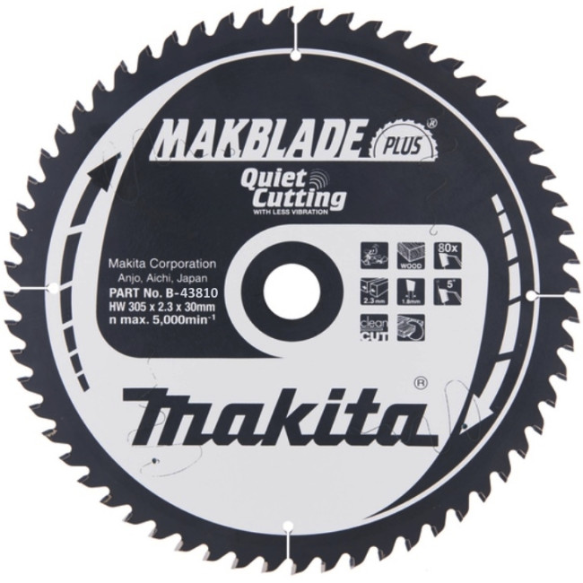 Пильный диск Makblade-Plus Makita B-43810 – твердосплавный диск высокого класса с низким износом для долгой работы. Диск подходит для беспроводных торцовочных пил. Закаленное и точно отбалансированное лезвие способно поглощать удары и обеспечивает точный и прямой рез.Лезвие диска покрыто защитным слоем, снижающим трение и уровень шума и предохраняющим от налипания смолы, краски или клея. Купить товар - Диск пильный для дерева, 305x2.3x30 мм, 80T, ATB, Makblade-Plus Makita B-43810 очень просто, достаточно положить товар в «корзину» и оформить заказ или позвонить нам по телефону, так же можно для Вашего удобства, отправить заявку на Е-майл.