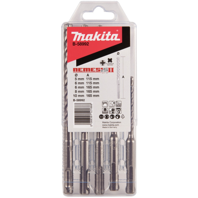 Набор буров по бетону SDS-Plus (5,6х115; 6,8,10х165) 5 шт Nemesis II Makita B-58992