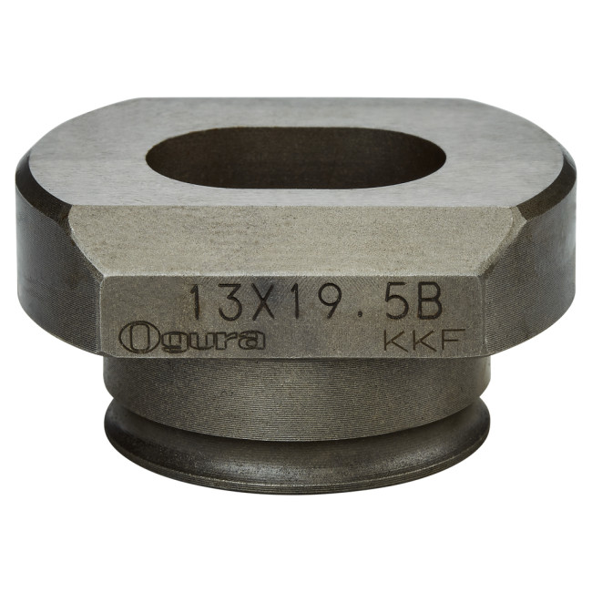 Плашка для пробивки овальных отверстий диаметром 13 х 19,5 мм. С помощью пробойника и соответствующей матрицы можно пробить отверстия в стальных пластинах толщиной от 2 до 8 мм. В нержавеющей стали отверстия можно пробить в пластинах толщиной от 3 до 6 мм. Для пробивки отверстий также требуется пробойник. Соответствующий пуансон для этой матрицы — SC05340300.