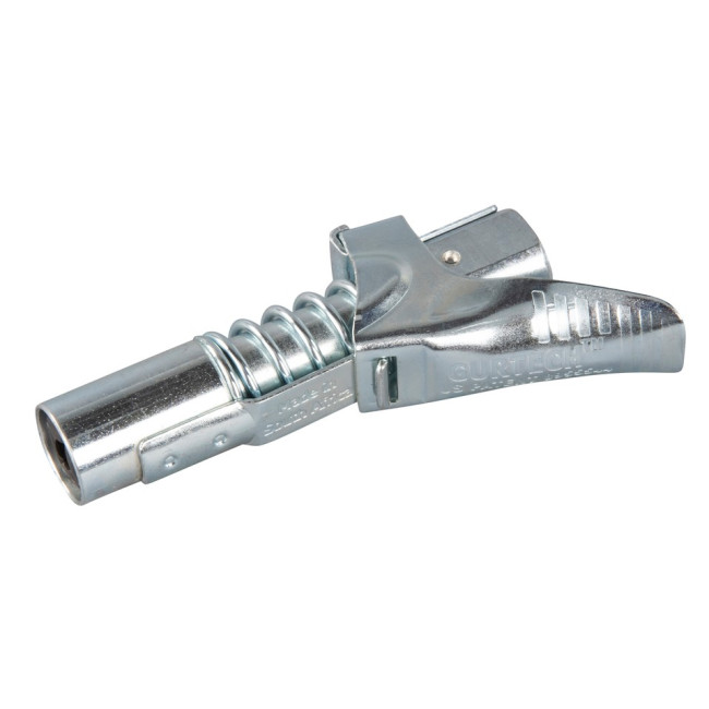 Адаптер с функцией блокировки можно прикрепить к смазочному ниппелю с помощью рычага. Преимущество этого заключается в том, что смазочный шприц можно легко подсоединять и отсоединять. Более того, мундштук больше не может застревать в пресс-масленке. Смазочный шприц также можно использовать двумя руками, и адаптер не нужно постоянно держать на смазочном ниппеле. Адаптер имеет 4 зажима для оптимального и герметичного соединения. Форсунка может выдерживать максимальное давление 69 МПа / 690 бар. Диаметр головки: 16 мм. Высота: 77 мм. Размер ключа: 14 мм. Соединение: 1/8" NPT.