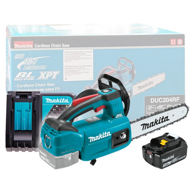Аккумуляторная цепная пила Makita DUC204RF – практичное по стоимости и по параметрам подходящее многим пользователям устройство. Применяется оно преимущественно для обрезки веток с различных деревьев. Данный агрегат может быть крайне полезен людям, которые периодически работают в садах, на дачах, во дворах загородных домов. Длина шины у предлагаемой техники составляет 20 см. Работает от 1-го аккумулятора напряжением 18V.