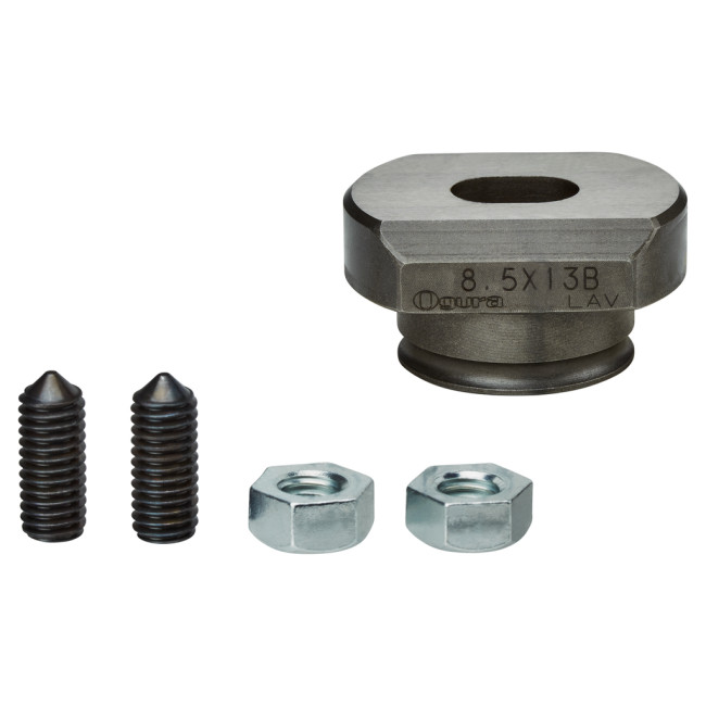 Плашка для пробивки овальных отверстий диаметром 9 х 18 мм. С помощью пробойника и соответствующей матрицы можно пробить отверстия в стальных пластинах толщиной от 2 до 8 мм. В нержавеющей стали отверстия можно пробить в пластинах толщиной от 3 до 6 мм. Для пробивки отверстий также требуется пробойник. Соответствующий ниппель пуансона для этой матрицы — SC05340250.