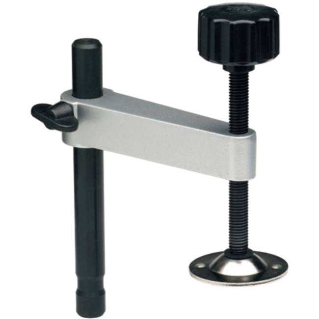 Вертикальный зажим материала подходит для торцовочных пил. С помощью этого зажима вы можете закрепить распиливаемый материал сверху на столе торцовочной пилы.