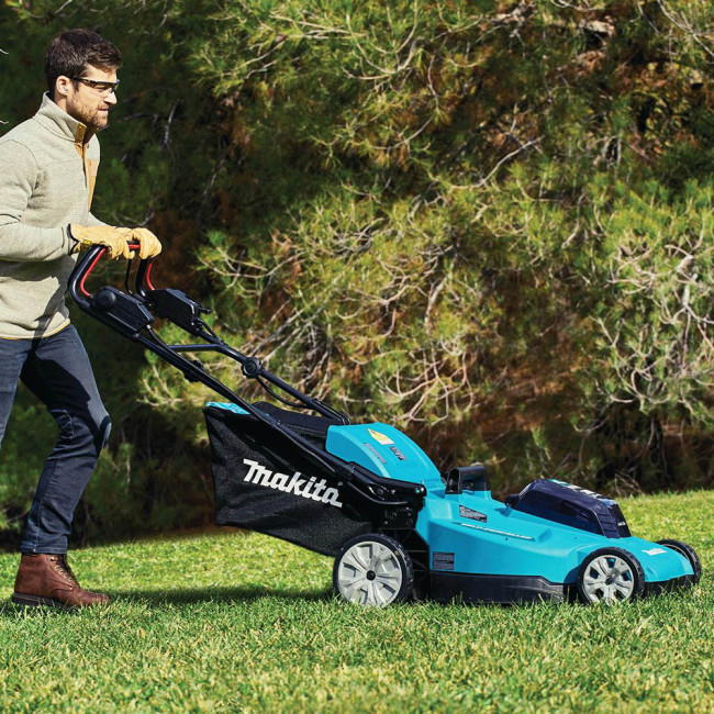 Аккумуляторная газонокосилка Makita DLM480Z функционирует в трех режимах: мульчирование, сбор травы в корзину или выбрасывать сзади. Прочная дека отличается стойкостью к механическим повреждениям. Вместительный травосборник позволяет реже прерываться на его опустошение. Предусмотрено 10 режимов регулировки высоты скашивания. Рекомендуемая площадь кошения 400-800 м2