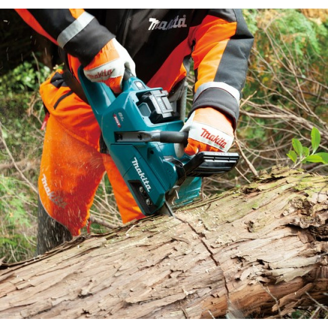 Аккумуляторная бензопила с питанием от аккумулятора XGT 40 В. Бензопила оснащена пилой длиной 35 см, оснащена BLDC – бесщеточным двигателем постоянного тока и регулируемой автоматической системой смазки цепи. Имеет функцию антиотдачи и электрический тормоз, а также технологию Wet Guard – высокую водостойкость. Поставляется без аккумуляторов и зарядного устройства.