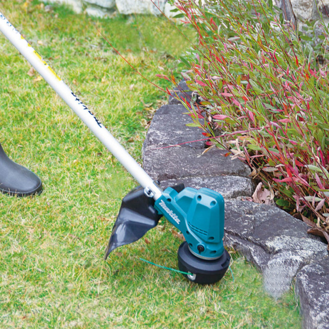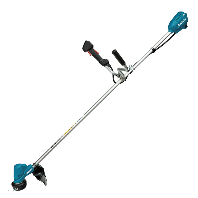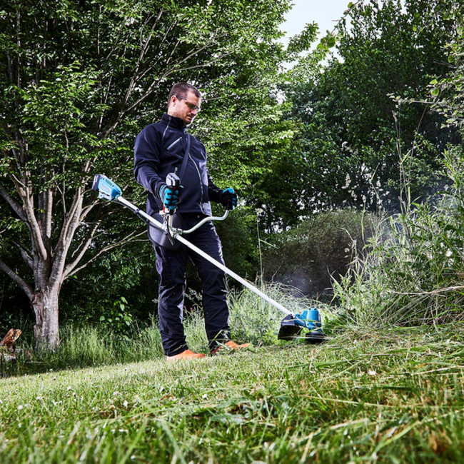 Аккумуляторная коса Makita DUR190URT3 имеет удобную рукоятку велосипедного типа, а также не оказывает негативного влияния на окружающую среду благодаря использованию электродвигателя, а не ДВС. Ширина скашивания составляет до 300 мм при работе с леской и 255 мм с ножом. Благодаря технологии Active Feedback Sensing инструмент автоматически отключается, чтобы защитить пользователя, если скорость вращения внезапно замедлится. Число оборотов в минуту также автоматически переключается между 3500 - 6050 об./мин в зависимости от плотности сорняков, что позволяет улучшить энергосбережение и снизить уровень шума.