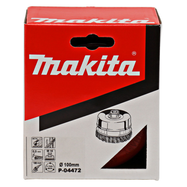 Чашечная щетка Макита Р-04472, предназначена для угловых шлифовальных машин Макита. Ее рабочая часть представляет собой пучки витой проволоки, с помощью которой осуществляют шлифование, матирование, полирование. Проволочные щетки используются для удаления кромок сварных швов, краски или ржавчины с плоских или неровных поверхностей. Щетка ? 100 мм с 26 оплетками. Проволока имеет толщину 0,5 мм и изготовлена ??из оцинкованной стали. Подходит для высокой производительности съема с интенсивным и более эффективным съемом материала в ограниченном пространстве. Щетка Makita P-04472 с резьбой M14 для угловых шлифовальных машин от 180 до 230 мм.